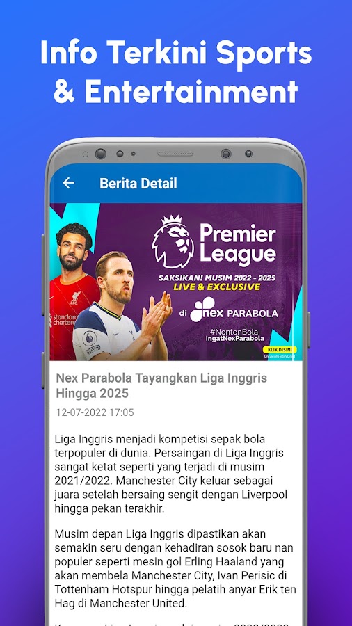 Спортивные трансляции: BRI Liga 1, Pegadaian Liga 2, Премьер-лига, Лига чемпионов, Лига Европы, НБА, волейбол, теннис и многие другие.