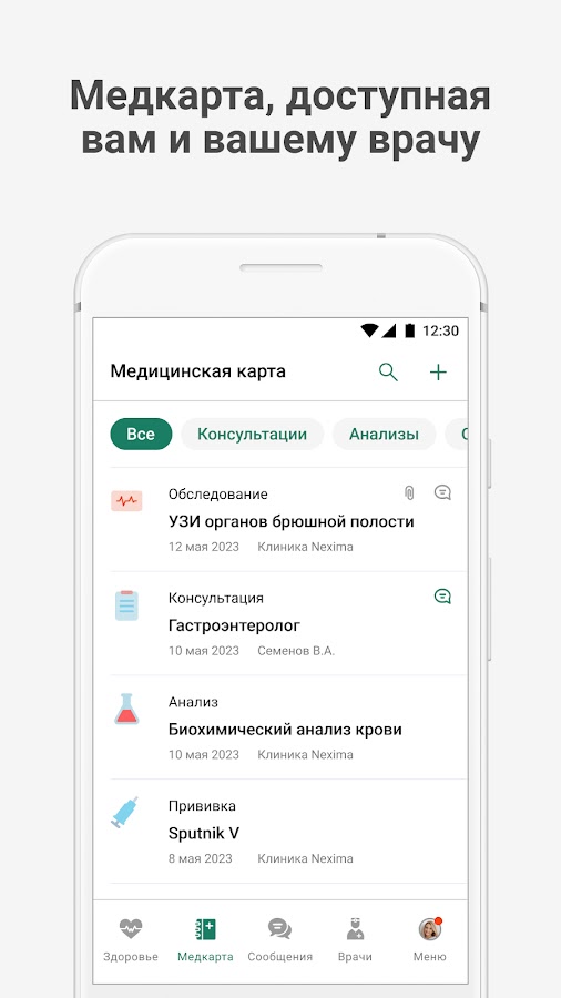 – Храните заключения, результаты обследований и анализов в одном приложении;