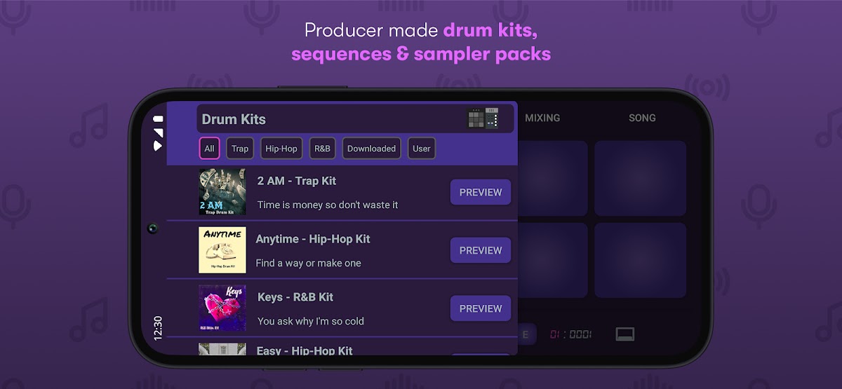 Если вы ищете бесплатное приложение для студии звукозаписи с профессиональными инструментами или бесплатную студию для создания музыки, специализирующуюся на трэпе, хип-хопе и R&B, эта мобильная DAW — то, что вам нужно. Мы предлагаем вам одно из лучших приложений для создания музыки, где продюсеры обновляют библиотеку каждую неделю, чтобы вы могли создавать музыку, которую так долго ждали! Наше приложение для записи песен — это отличная мобильная DAW, предоставляющая полный набор функций для создателей музыки.