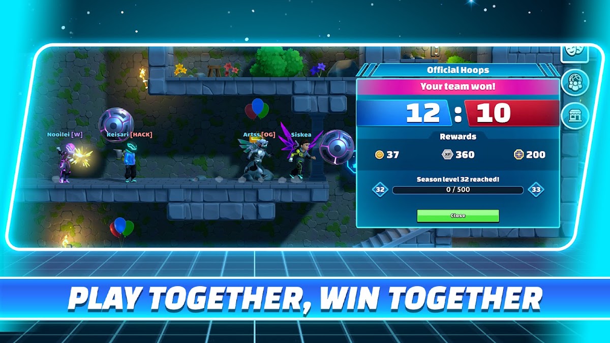 Работайте вместе, чтобы набрать как можно больше очков в нашей функции «Бросайте в обручи». Заходите в порталы из Hub World, чтобы играть в официальных мирах баскетбола и получать награды.