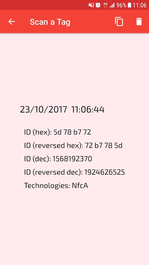 Чтобы использовать NFC Reader, вы просто должны держать метку или карту на задней панели вашего устройства, чтобы прочитать его. NFC Reader позволяет скопировать содержимое тега или открыть URI. Вы также можете управлять тегами и карточками, ранее отсканированными в разделе «История».