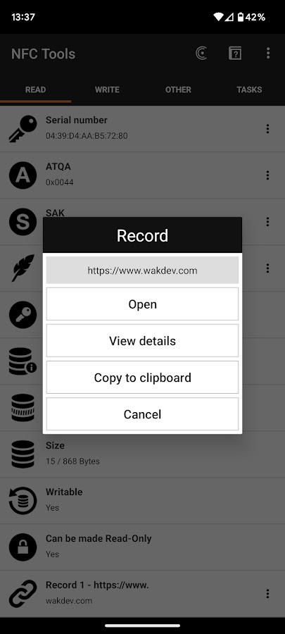 NFC Tools — это приложение для чтения, записи и программирования задач на Ваших NFC-метках и других совместимых NFC-чипах.