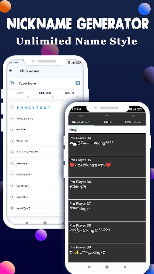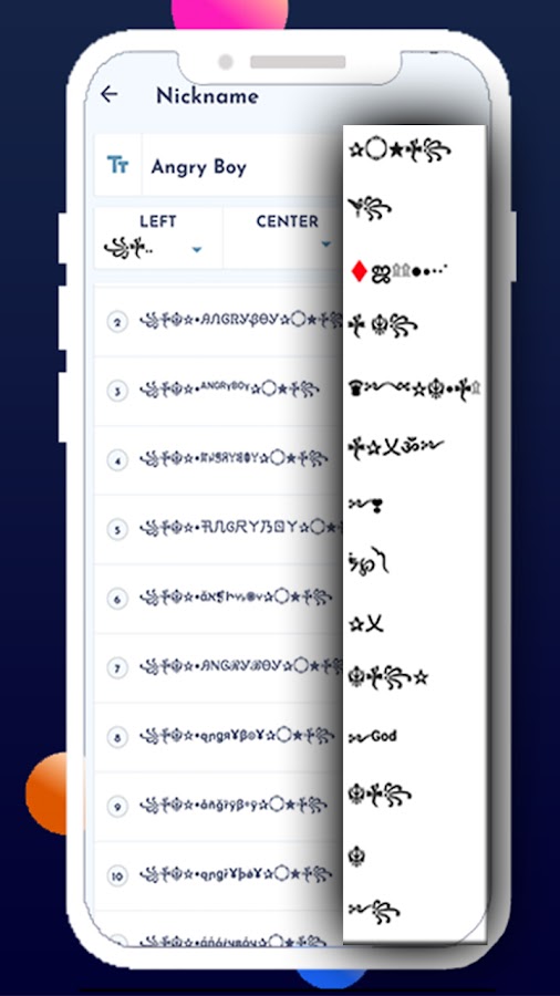 Это приложение представляет собой простой в использовании бесплатный генератор имен. Введите свое собственное имя и автоматически сгенерируйте псевдоним с различными шрифтами, буквами и символами.