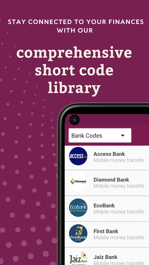 В этом приложении вы можете иметь ussd-коды следующих нигерийских банков.