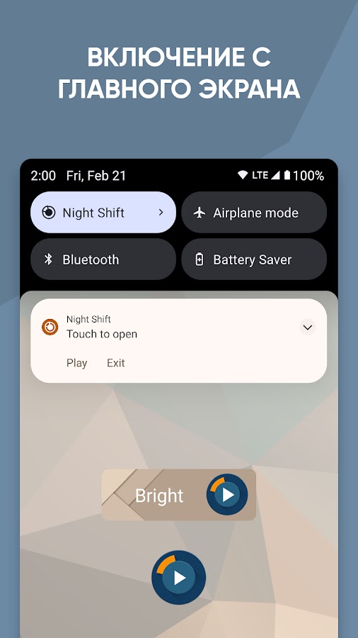 🔋 Пониженное энергопотребление — Наше приложение для ночного режима, снижает энергопотребление на большинстве устройств. Воспользуйтесь им для сбережения энергии и предотвращения хронических головных болей.