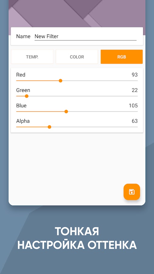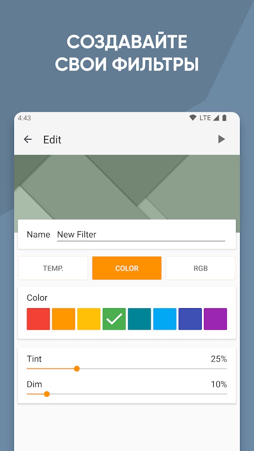 💾 Сохранение и изменение фильтров ночного режима — Создавайте и редактируйте фильтры, которые подойдут под ваши потребности или создавайте установки фильтров, которые защитят ваши глаза, исправят суточный ритм, вылечат бессонницу или недостаток мелатонина (проблемы со сном).