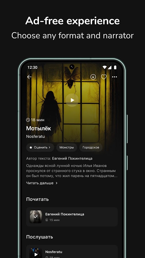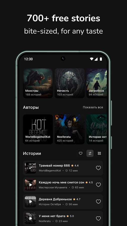 Хотите пощекотать нервы на ночь? В нашем приложении вы найдете истории на любой вкус: от городских легенд и страшилок для леденящих душу хоррор рассказов.