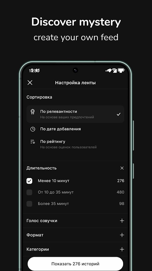 — Настраивайте ленту историй: выбирайте длительность, формат и голос озвучки под ваши предпочтения.