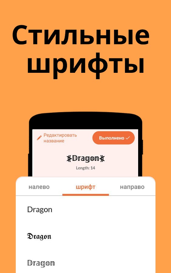 Есть много редких шрифтов с прохладными символами, чтобы сделать зарубки с этим стильным приложением редактора имени. Вы можете поместить любой текст по вашему выбору с различными каллиграфическими стилями шрифта и украсить его с различными элементами шрифтов для ваших профилей социальных сетей, а также.