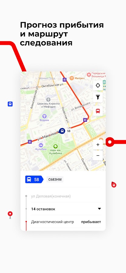 — Узнать расписание и прогноз прибытия на нужную остановку;
