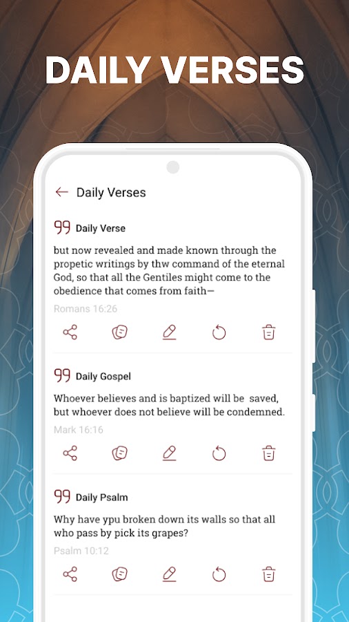 Ежедневно предлагаются случайные стихи из библейских книг, таких как Псалтирь или Евангелие.