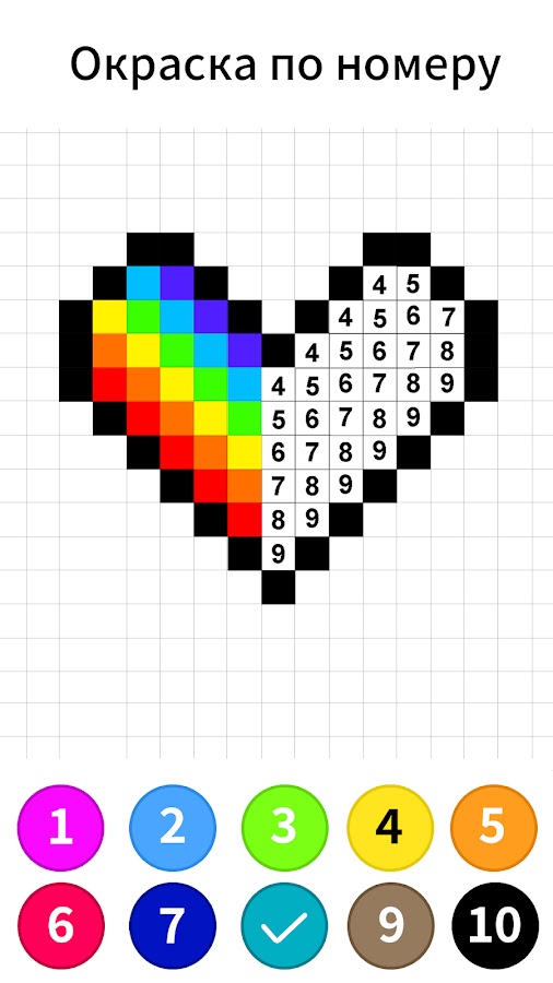 Супер простой геймплей: заполните пиксельные блоки с цветом по номеру, и у вас будет кусок супер крутой pixel art!