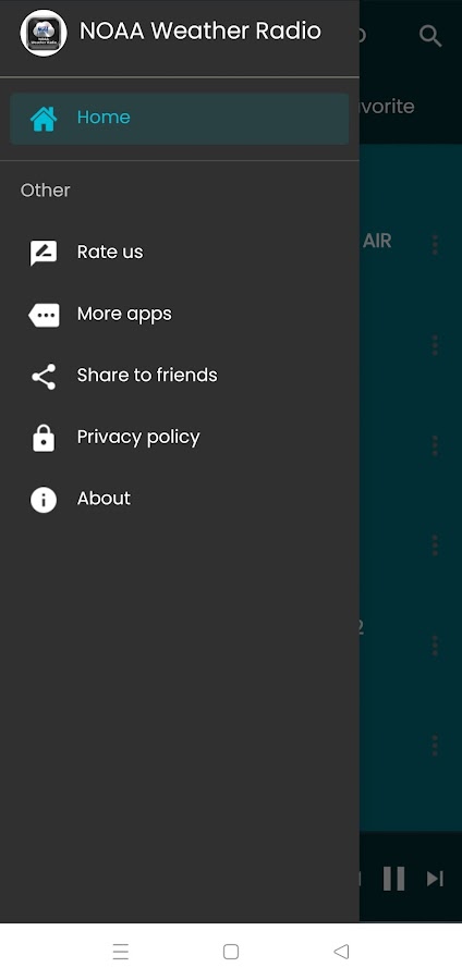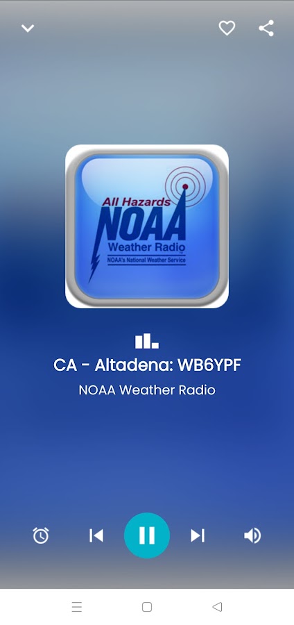 Слушайте в прямом эфире «NOAA Weather radio», транслирующую список аудиопотоков. Приложение предлагает платформу потокового аудио.