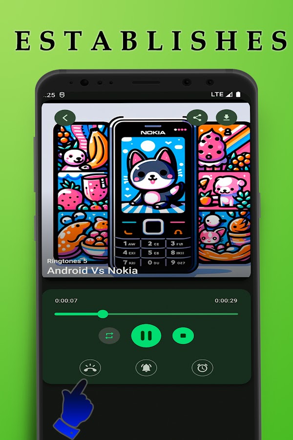 • Наслаждайтесь мелодией звонка nokia jadul для начала или блокировки вызовов, найденных в ландшафтных, абстрактных, вдохновляющих цитатах, спортивных и развлекательных категориях, а также в анимированных древних оригинальных и других изображениях nokia.