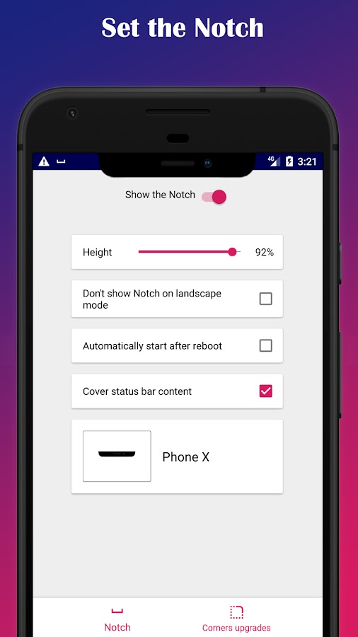 — Скругленные уголки. iPhonize — единственное приложение, которое не просто добавляет верхнюю панель Айфон Х, но и скругляет уголки экрана.