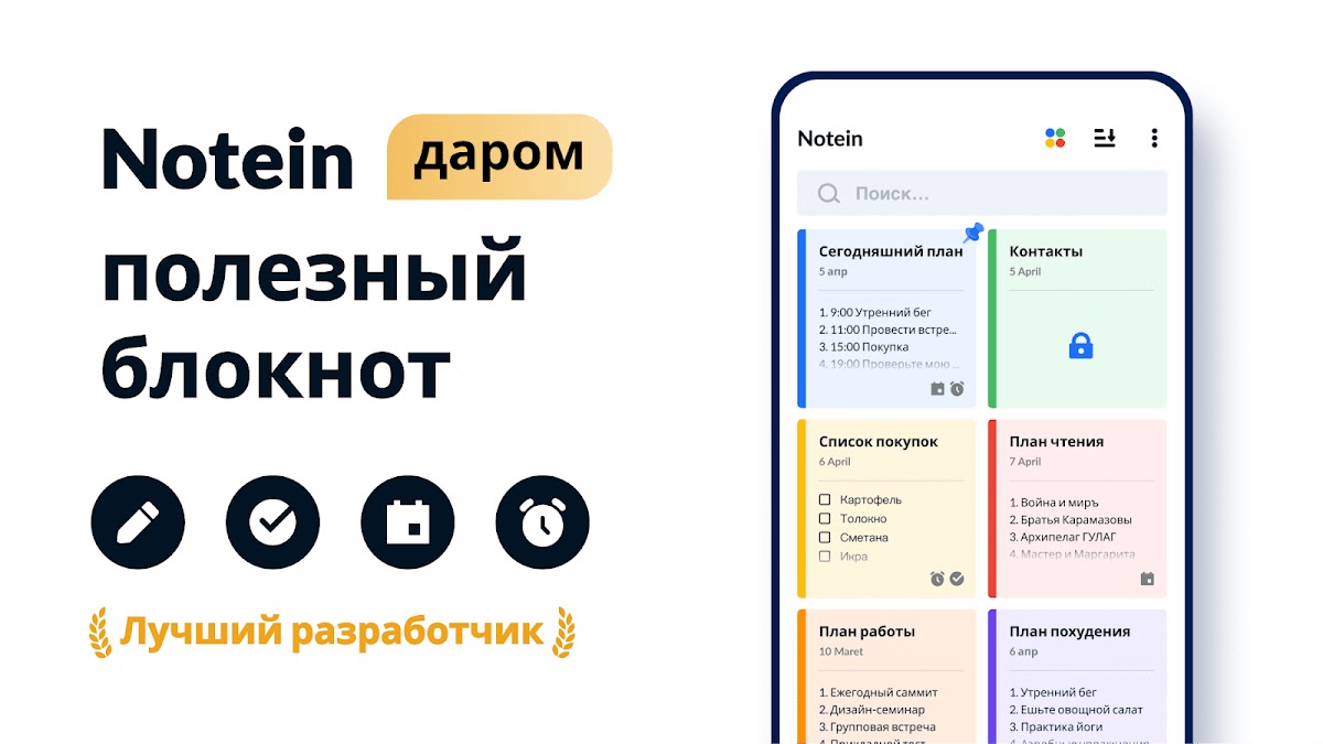Вы можете устанавливать напоминания для заметок. Бесплатное приложение для заметок Notein напомнит вам вовремя, и вы не пропустите ничего важного!