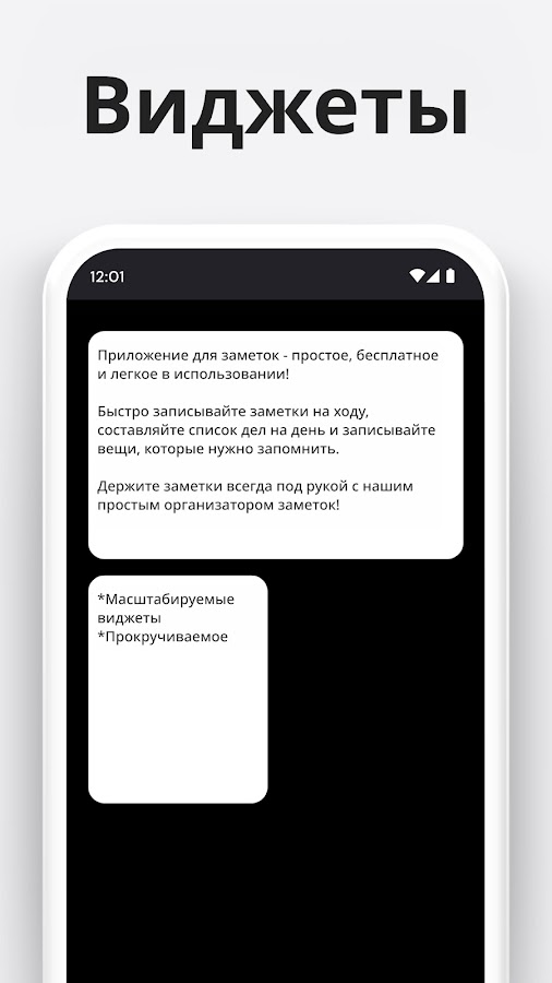 * Можно разместить несколько виджетов, каждый с разными заметками.