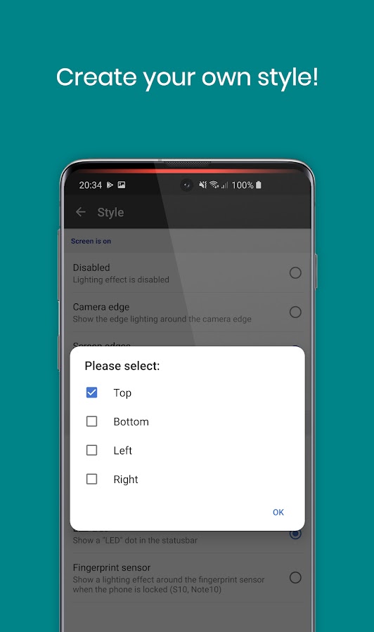 Вы можете выбрать различные стили индикатора уведомлений и отображать индикатор уведомлений вокруг выреза камеры, по краям экрана или даже имитировать светодиодную точку уведомлений в строке состояния вашего телефона!