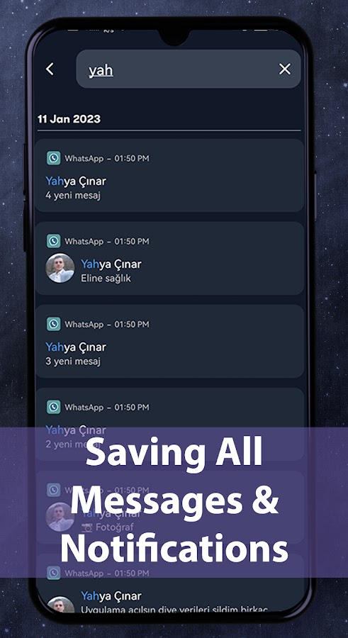 Это приложение предназначено для перехвата уведомлений и всплывающих сообщений вашего устройства, которые появляются на вашем устройстве, и сохранения их для последующего просмотра и поиска, даже если они были отклонены. Сохраняет ваши сообщения и изображения в уведомлениях. Защита отпечатков пальцев обеспечивает безопасность всех ваших данных. Все сохраненные уведомления хранятся только на вашем телефоне и никто, в том числе и мы, не может получить доступ к этим данным.