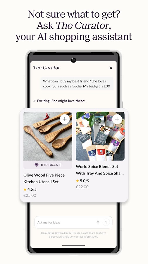 Есть мысли о нашем приложении? Мы будем рады услышать от вас по адресу appfeedback@notonthehighstreet.com