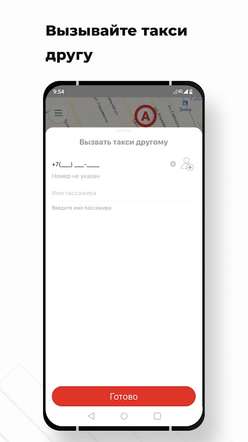 Используйте опцию “Вызвать такси другому” в разделе “Пожелания” и укажите его номер телефона. Когда такси подъедет, на указанный номер придет СМС, а вам — сообщение в приложении.