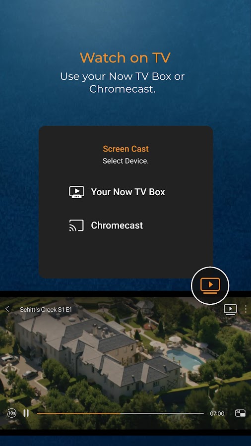 Находите контент в приложении Now TV и смотрите его по телевизору через телеприставку и Chromecast.