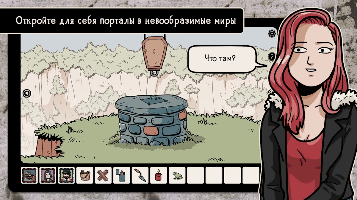 Как и в классической игре «укажи и щелкни», взаимодействуйте с объектами и персонажами в окружающей среде, касаясь их. Используйте предметы инвентаря на игровых объектах или комбинируйте их, чтобы создать новый предмет, который поможет вам продолжить приключение. Проверьте свою смекалку и разгадайте головоломки и загадки.