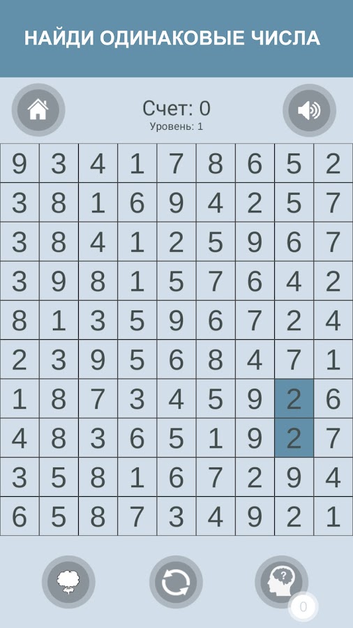 Что бы пройти головоломку дальше — вычеркни одинаковые цифры.