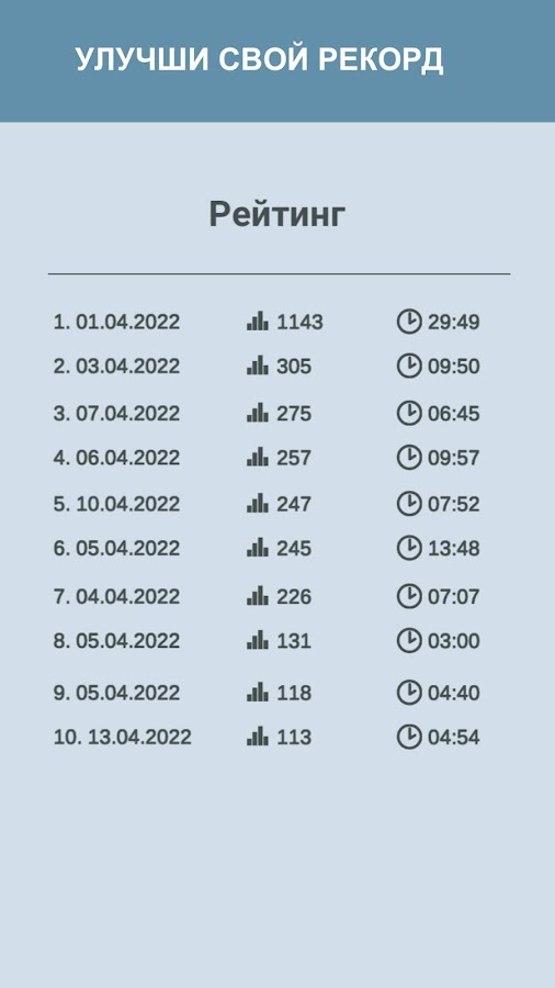 — Таблица рекордов;