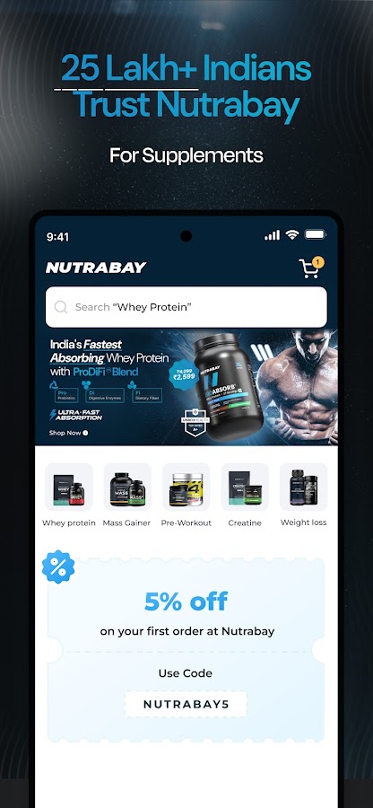 Nutrabay для вас, если вы хотите дать своему организму все необходимые питательные вещества, чтобы оставаться в желаемой форме, будь то гейнеры, креатиновый порошок, протеиновые батончики, включая растительный белок, поливитаминные добавки или что-то еще. Итак, скачайте Nutrabay: Supplements Store, приложение для оптимального питания и приложение для покупки пищевых добавок, и подарите своему телу оптимальное питание.