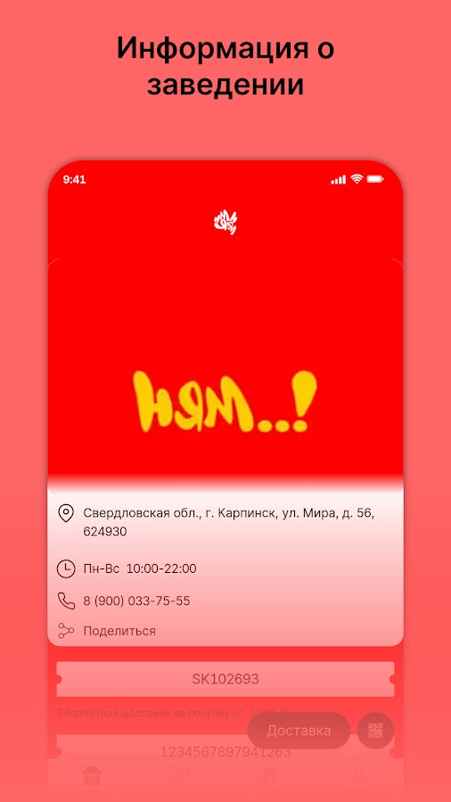 Мы создали это приложение чтобы нашим клиентам стало намного комфортней взаимодействовать с нами. Узнать о наших новинках, получить уникальный промокод на скидку. Для постоянных клиентов отдельная система скидок, а так же акции для всех клиентов нашего заведения! Информация о стоимости и изменениях товара в меню стало намного проще и удобней. Не нужно писать или звонить, просто откройте приложение и закажите не выходя из дома!