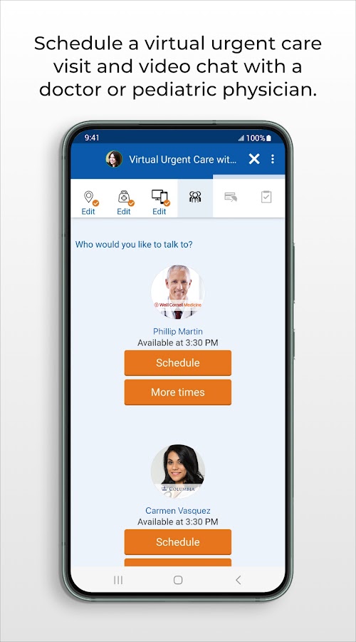 Виртуальная неотложная помощь: при заболеваниях или травмах, не угрожающих жизни, свяжитесь с одним из наших врачей неотложной или детской неотложной медицинской помощи из Колумбии или Weill Cornell Medicine через видеочат в реальном времени 7 дней в неделю с 8:00 до полуночи.