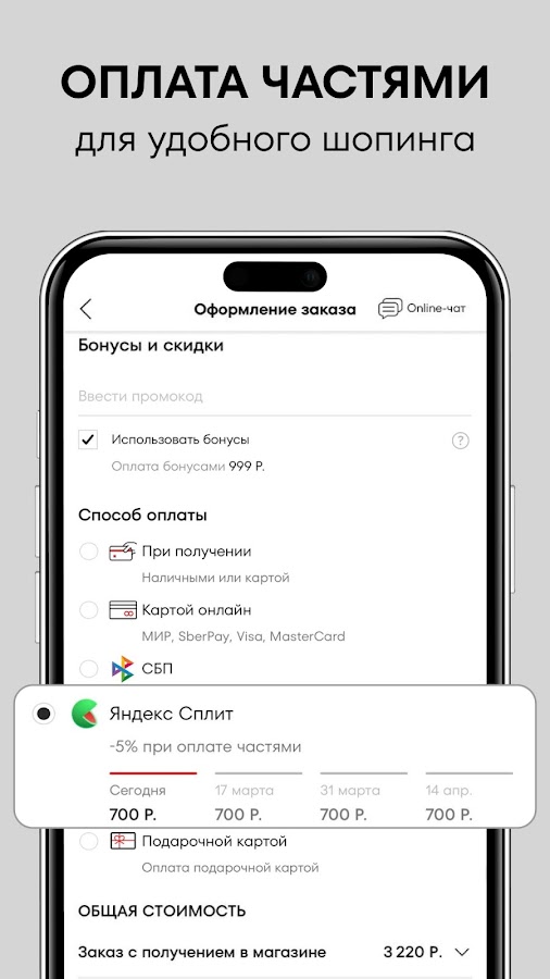 — Оплата наличными/картой при получении, картой онлайн, SberPay и СБП;