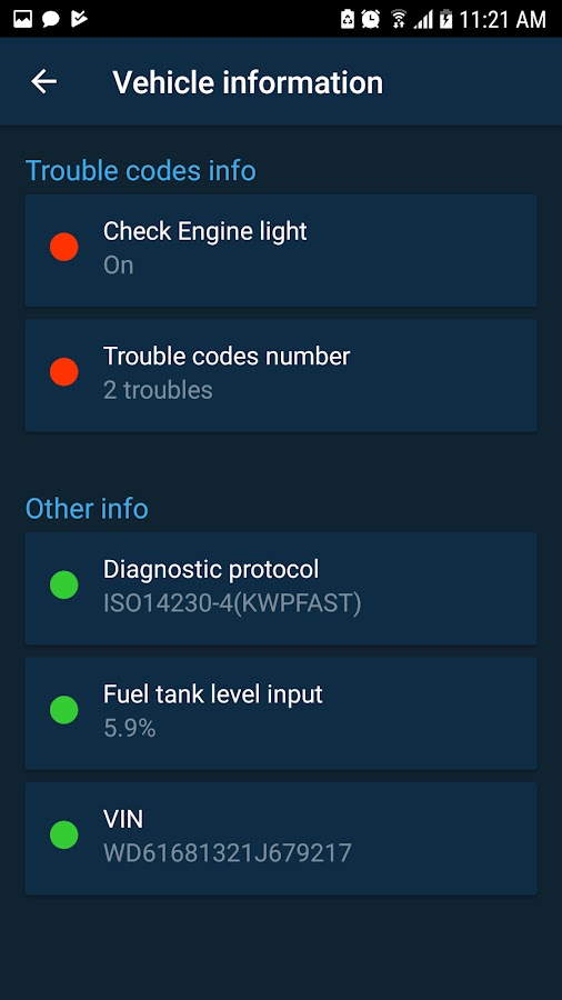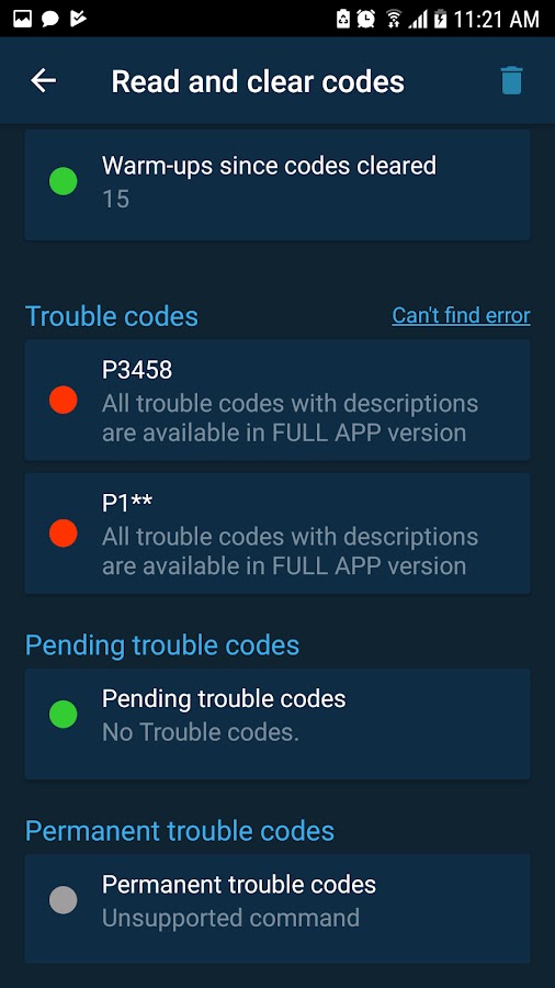 — доступны все коды OBD2 ошибок с расшифровками;
