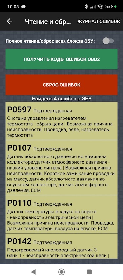 Также приложение умеет читать и сбрасывать ошибки, вести журнал поездок, имеет пользовательские профили датчиков, строить графики, проводить тест разгона, ручной терминал, режим HUD и плавающий виджет поверх экрана.