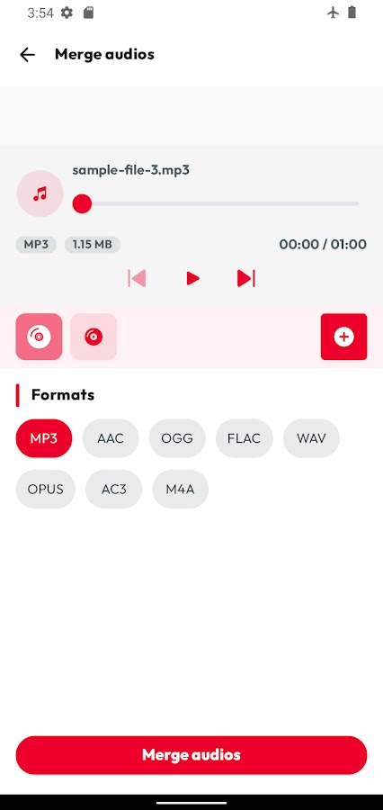 Merge Audio Files предлагает беспрецедентную простоту и скорость. Благодаря поддержке форматов MP3, AAC, OGG, FLAC, WAV, OPUS, AC3 и M4A вы можете объединять и объединять свои любимые песни всего несколькими нажатиями. Попрощайтесь со сложными процессами редактирования и здравствуйте с быстрым и простым объединением аудио.