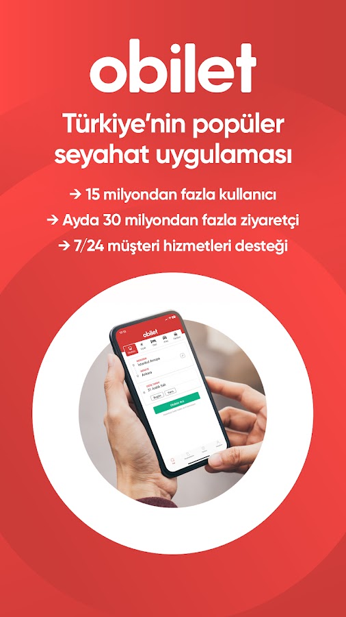 Obilet позволяет вам мгновенно просматривать внутренние и международные авиабилеты и автобусные билеты, десятки вариантов аренды автомобилей и самые эксклюзивные отели. Вы можете сравнивать цены, находить наиболее привлекательный вариант для себя и покупать его одним кликом, используя свою кредитную или дебетовую карту.