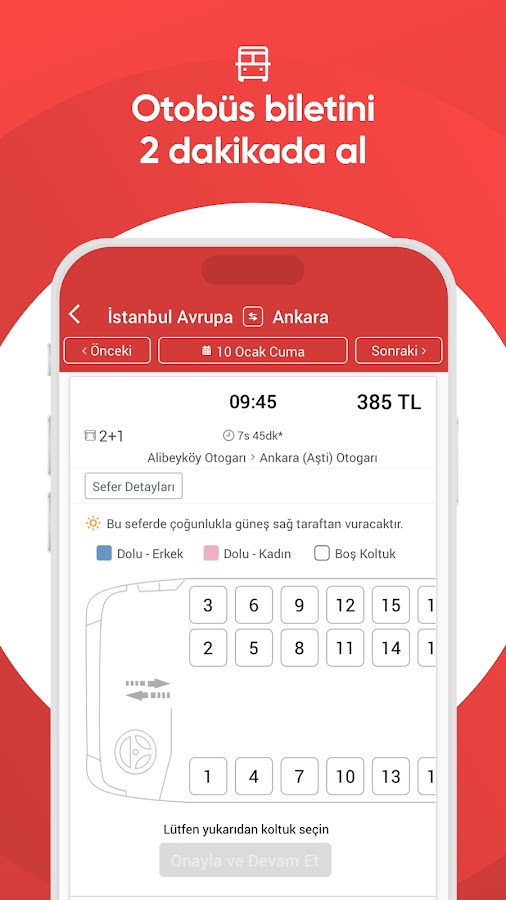 Obilet предоставляет вам возможность искать и сравнивать билеты на автобусы и самолеты, а также варианты аренды автомобилей от всех компаний. Таким образом, вы можете легко найти билет или автомобиль, подходящий вашему бюджету, и мгновенно оформить бронирование.