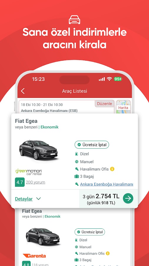 Когда вам нужен арендованный автомобиль для ваших путешествий, Obilet снова рядом с вами! Вы можете сразу арендовать автомобиль через Obilet. От крупнейших компаний по аренде автомобилей в Турции, таких как Green Motion, Garenta, Sixt, Europcar и Rentgo, вы можете найти идеальный автомобиль для себя и арендовать его безопасно.