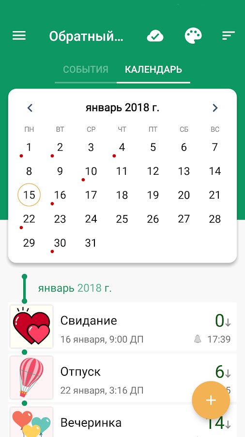 Благодаря приложению Обратный отсчет вы nе пропустите больше день рождения, юбилей, свадьбу или матч. Вы вручную подсчитываете сколько времени осталось до какого-то важного события, такого как: роды, военная служба, заработная плата, бонусы, отдыхи, день рождения, дату появления ребенка на свет, Новый год? С помощью счетчик дней не пропустите ни одного важного события.
