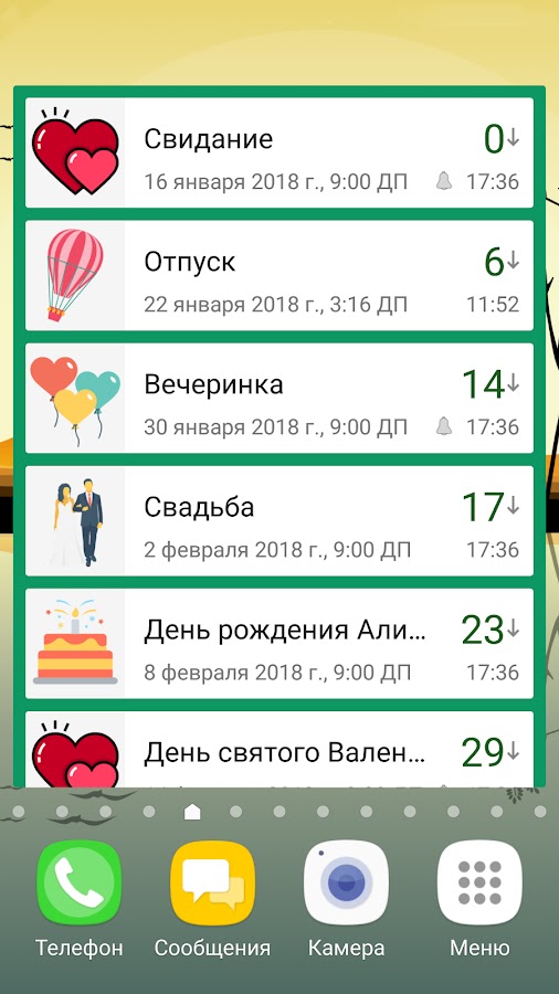 Обратный отсчет дней виджет / Счетчик дней это бесплатное приложение, которое напоминает Вам о важных датах и событиях в вашей жизни, Вам не нужно вручную подсчитывать оставшиеся дни или искать в своем календаре.