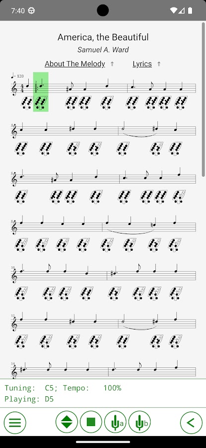 Интерактивный сборник нот с нотами и табулатурами для различных видов сосудов-флейт (окарины с 12, 10, 6 отверстиями; флейта coda EDC (https://codaedc.com)). Это приложение поможет вам научиться играть популярные традиционные мелодии и некоторые другие общедоступные мелодии.