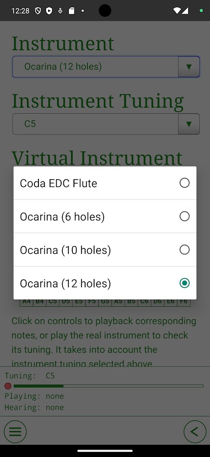 — Выбор между окариной с 12, 10 и 6 отверстиями, флейтой Coda EDC (https://codaedc.com) и различными настройками инструментов;