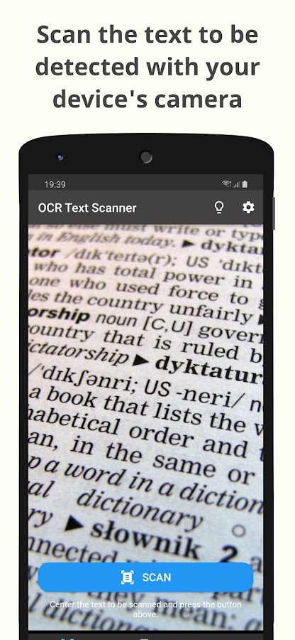 OCR Text Scanner — это программа для чтения OCR (оптическое распознавание символов), которая позволит вам сканировать тексты из физического мира с помощью камеры вашего устройства и быстро и легко конвертировать их в цифровой формат.