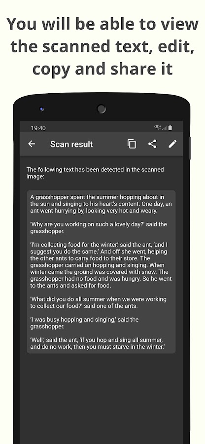 — Копируйте, редактируйте и делитесь всеми отсканированными вами текстами.
