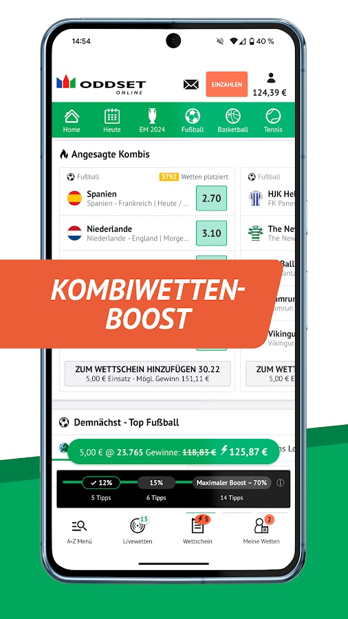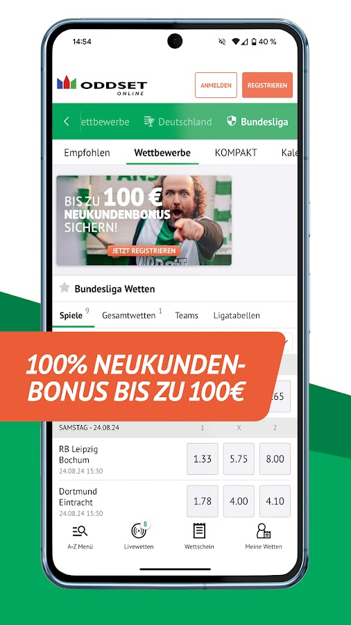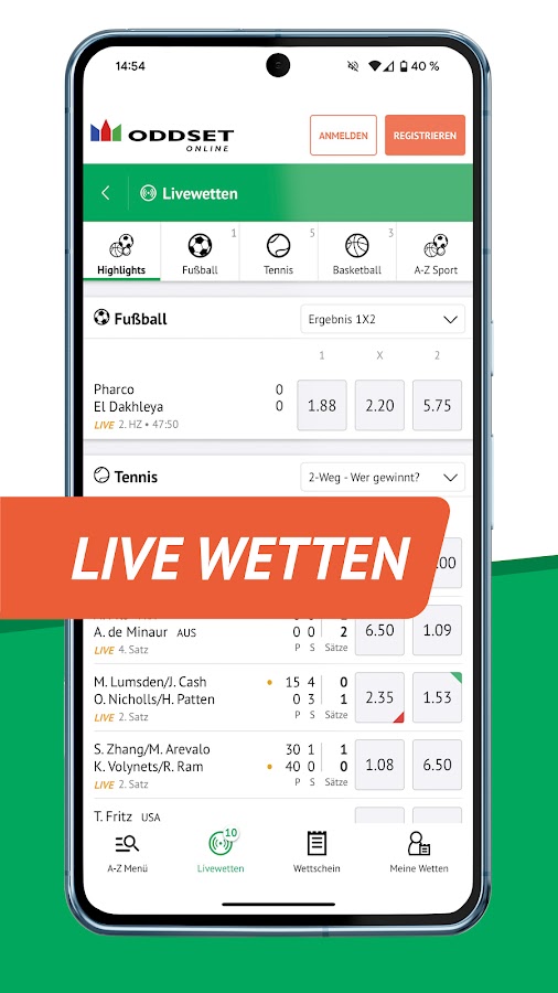 Делайте ставки безопасно и легко онлайн с помощью ODDSET — приложения для онлайн-ставок на спорт. Тысячи игр с высокими коэффициентами доступны вам круглосуточно, каждый день в году. Воспользуйтесь возможностями ставок на многочисленные виды спорта, включая текущие ставки на футбол для Бундеслиги, 2-й Бундеслиги, 3-й лиги, Кубка DFB, Лиги чемпионов, Лиги Европы, Премьер-лиги, Серии А, Ла Лиги и т. д.