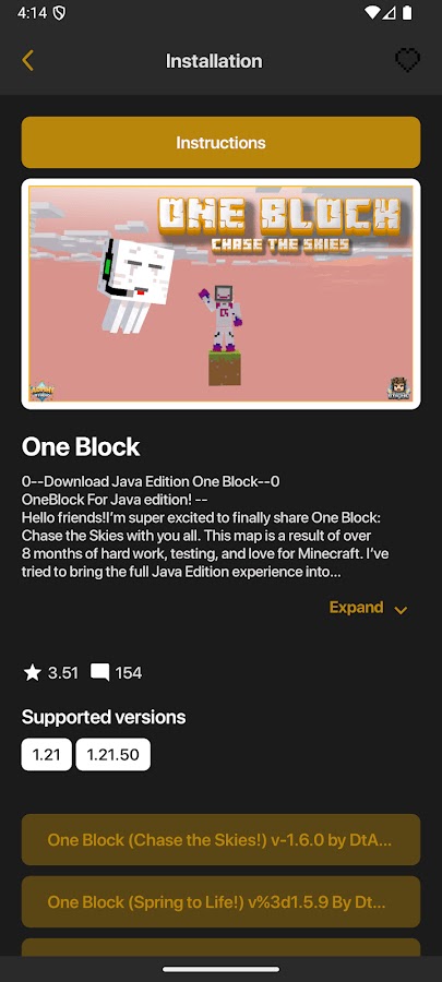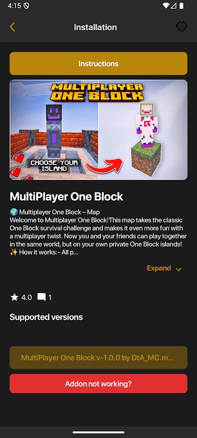 Один блок мод Майнкрафт ПЕ — это мод и карта для Minecraft PE, где всё выживание начинается с одного блока. Игрок появляется на небольшой платформе в небе, где единственный блок становится основой для строительства, добычи ресурсов и выживания. One Block Minecraft PE позволяет испытать настоящую атмосферу выживания, где каждая деталь и действие имеют значение. При разрушении блока появляются новые ресурсы, которые можно использовать для крафта инструментов, расширения платформы и строительства дома. Карта предлагает уникальный опыт выживания, требующий внимания, стратегии и творческого подхода. One Block Map идеально подходит для любителей минимализма, вызовов и настоящего приключения. Моды и аддоны добавляют новые возможности — фазы блоков, мобов и биомы — делая игру более разнообразной. One Block Minecraft PE совместим с последними версиями MCPE и устанавливается одним кликом. В приложении предусмотрен удобный установщик Mods, Addons и Map, который позволяет быстро начать выживание на одном блоке и создать свой собственный мир в небе.