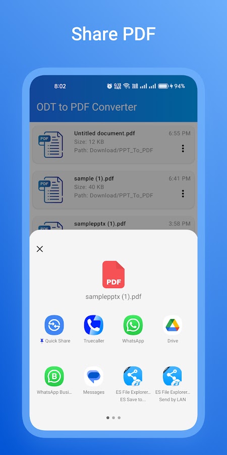 Сохраните и поделитесь своим PDF-файлом: после завершения преобразования преобразованный файл будет сохранен в папке «Download/ODT_To_PDF». Вы также можете поделиться конвертированным PDF-файлом с кем угодно.📧💬