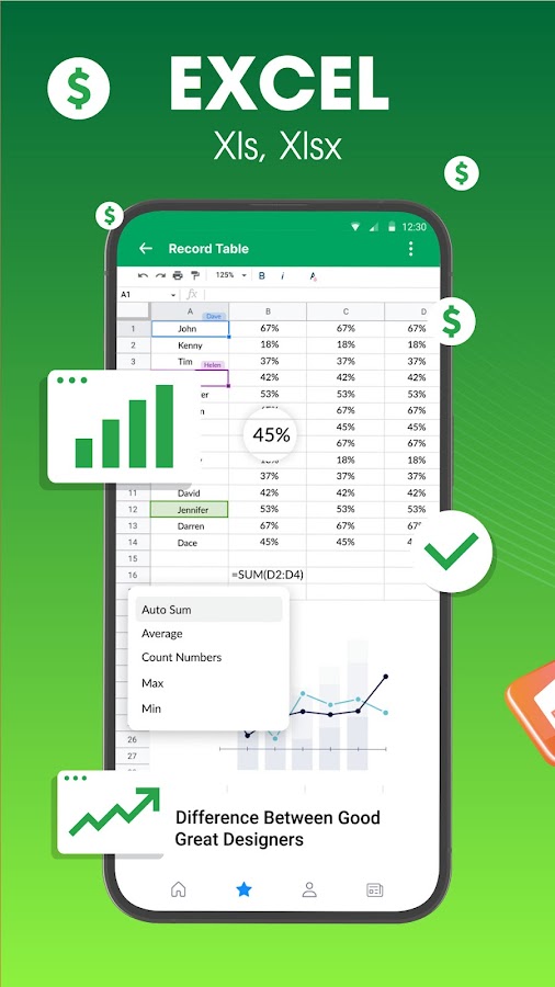 В дополнение к просмотр документ ворд, файлы читателя приложение также поддерживает просмотр документов во всех других форматах, таких как: PDF, PPT, TXT, Excel, Xls… Благодаря дружественному и простому в использовании интерфейсу читатель docx приложение удовлетворяет миллионы пользователей глобальные пользователи.