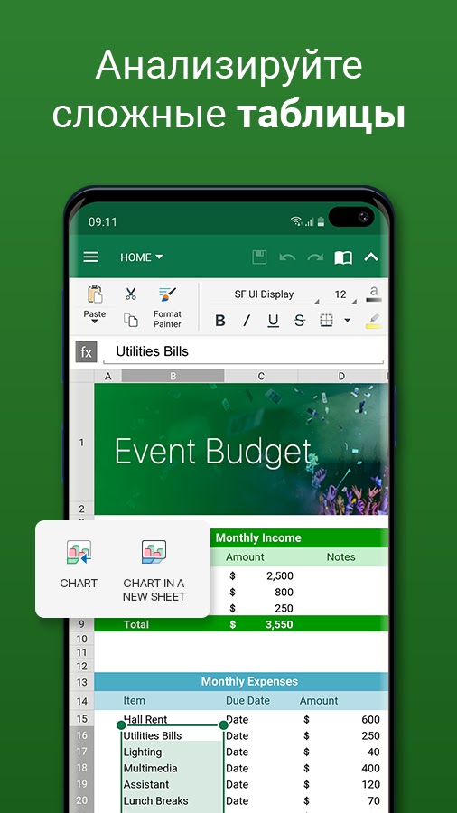 • Дополнительные возможности в Excel, в том числе вставка фильтров, условное форматирование, присвоение имен, импорт изображений, редактирование диаграмм и сохранение в формате CSV